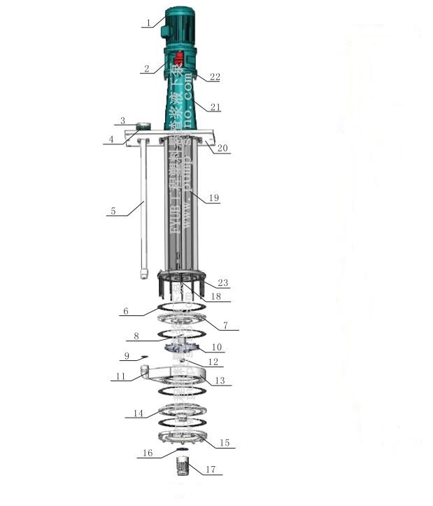 一、概述 FYUC系列工程塑料低轉(zhuǎn)速懸臂渣漿液下泵是我公司在吸收開發(fā)FYUB系列高轉(zhuǎn)速懸臂液下泵和FDU系列低轉(zhuǎn)速臥式泵成功經(jīng)驗和成熟技術(shù)的基礎(chǔ)上自行開發(fā)而成的。該系列泵的過流部件均采用超高分子量聚乙烯(UHMWPE)制作,具有優(yōu)異的耐腐、耐磨和耐沖擊性能;同時,由于采用懸臂軸結(jié)構(gòu)而取消了下部輔助支承,從而徹底解決了下部輔助支承在無法用冷卻水冷卻和潤滑的情況下不耐磨以及泵不能開空車的難題。同時,由于轉(zhuǎn)速低,該泵更耐磨、運行更穩(wěn)定。特別適用于含固量高且不能加冷卻水的腐蝕性介質(zhì)(含固體顆粒的重量濃度≤20%,固體顆粒直徑≤1.0mm),該泵的適用溫度≤80℃。