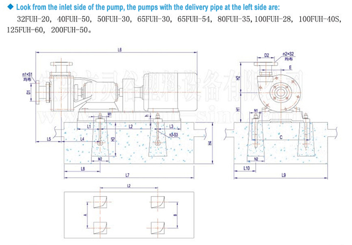 The FUH pump is a horizontal single stage, single suction centrifugal pump with support frame. This series of pump is meticulously designed by using imported technology and converged the advantages of the best corrosion resistant pumps in China. The FUH series pumps won the National Awards of the New Product in 1995.