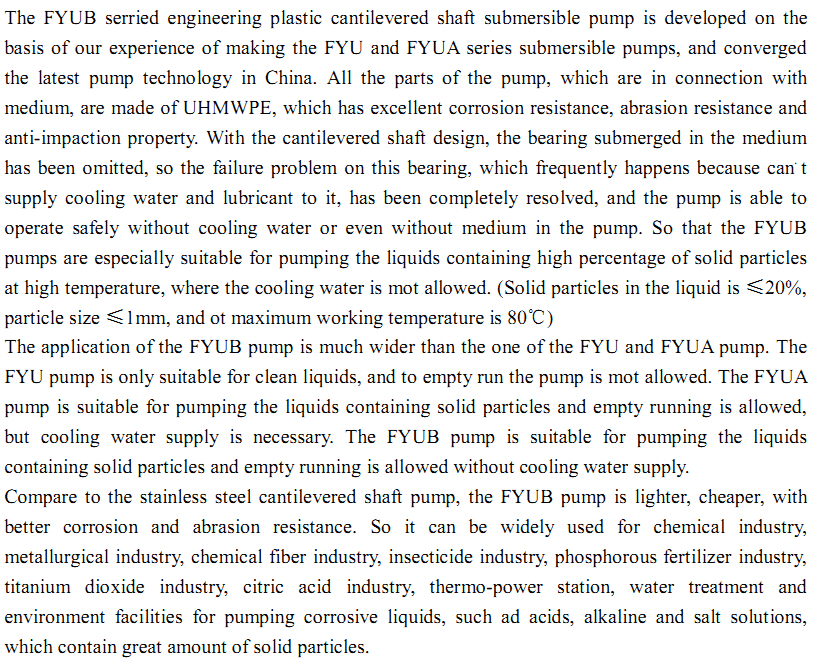 | FYUB engineering plastic cantilever type submerged pump | |