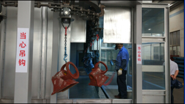 一,油漆車間 經(jīng)過3個月的努力,油漆車間終于完成了年初規(guī)劃的改造工作。工程包括:半自動噴漆線(含4.5m³空壓機機組),φ1米×0.7米噴砂機,2.6米×1.1米浸漆池,另配套安裝了0.5噸自立式起重機,1噸懸臂起重機,2.8噸單梁起重機,總投入約200萬元。 其中噴漆線設備整齊、美觀、實用,噴漆時通過清理除塵去毛刺→噴漆→流平→再噴漆→再流平→烤爐烘烤→強制冷卻等多道工序,徹底解決以前油漆質(zhì)量不穩(wěn)定的問題。 噴砂機徹底解決了以前鑄件表面鐵銹和鑄造砂無法去除干凈的問題。噴砂好的零件直接浸漆處理,不僅效率高,防銹漆比原手工涂漆薄,均勻,美觀。 以上多套設備投入使用后明顯提高了生產(chǎn)效率和改善了油漆車間工人的工作環(huán)境。