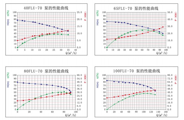 ◆從泵的進口來看,出口在泵中心左邊的泵有:40FLU-70,65FLU-70,80FLU-70,100FLU-70。